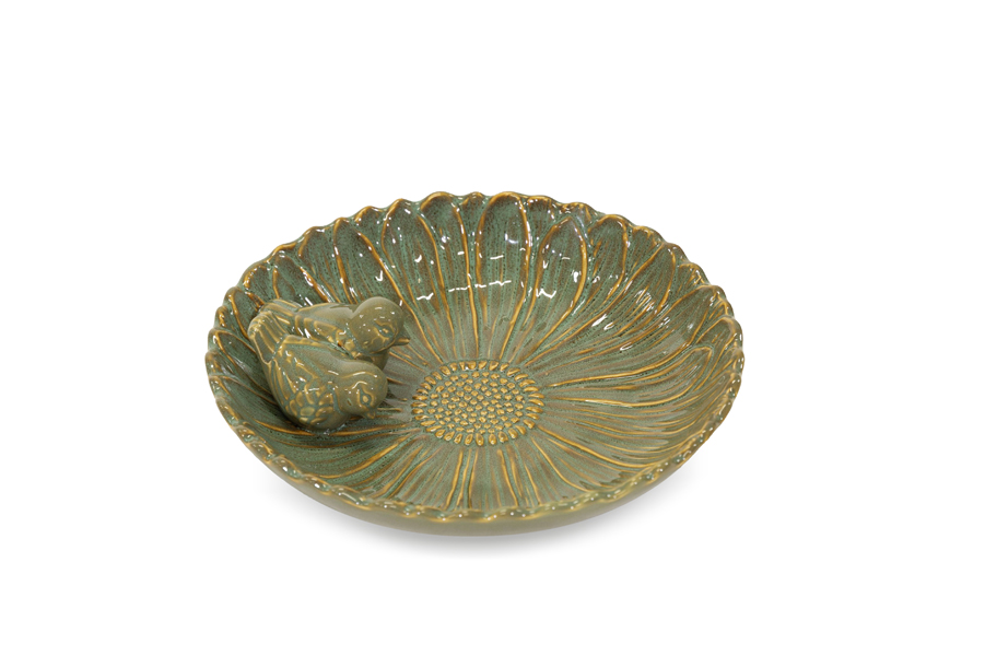 Green enameled birdbath D28cm