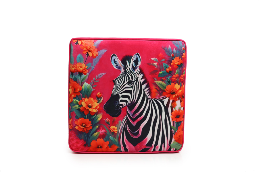 Velvet stool with zibra design and wood legs 44x44H42cm
