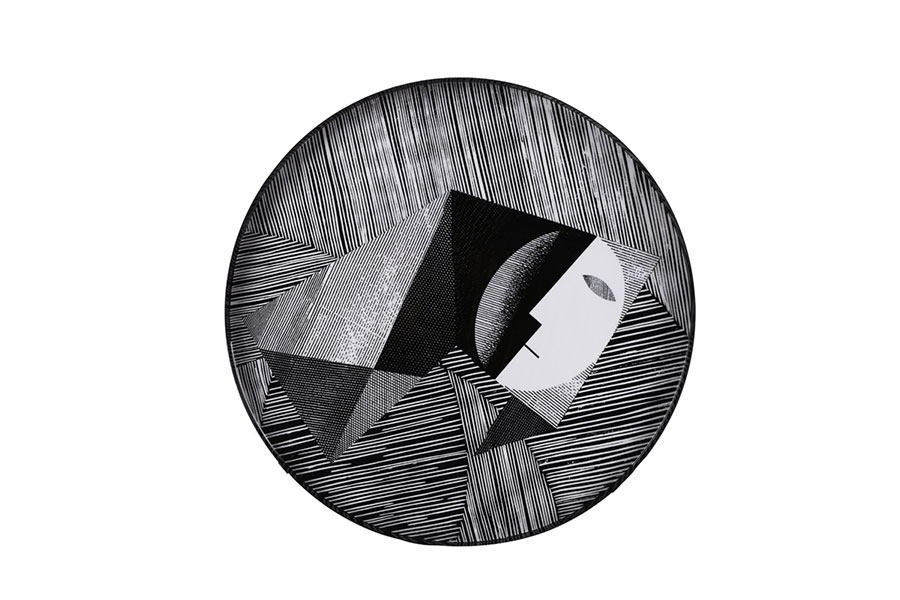 Black and white top tray on stand D36cm H39cm