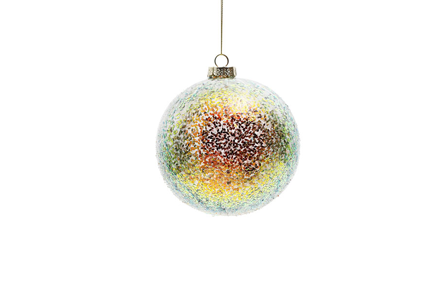 Pearled Christmas ball with green leaves design