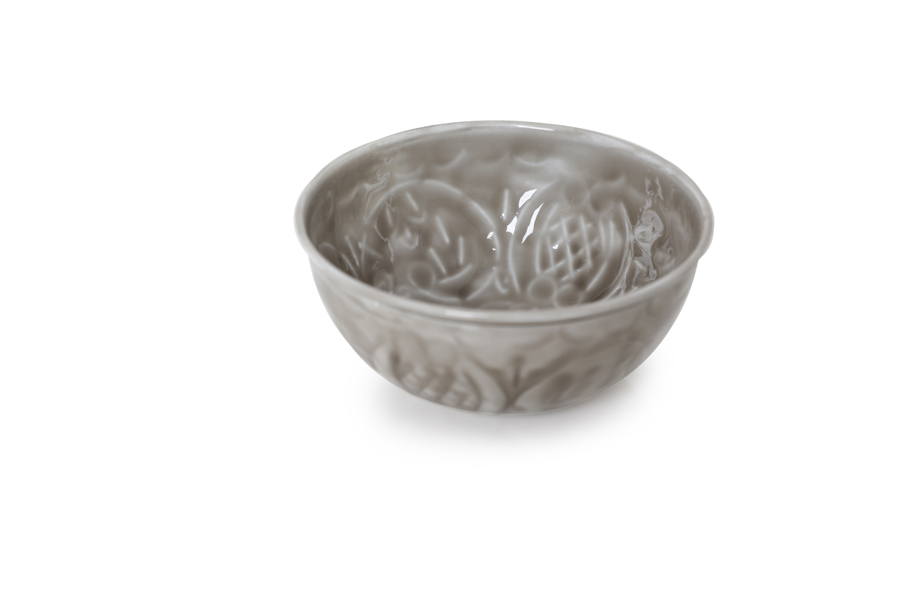 Engraved grey metal bowl D14cm H7cm