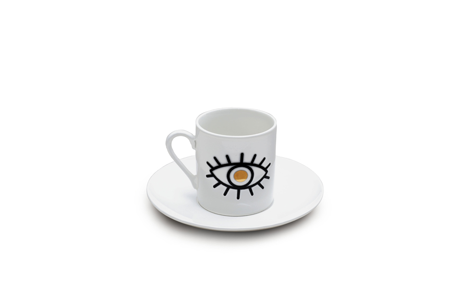 Set of 6 porcelain "EYE" coffee cups with saucers