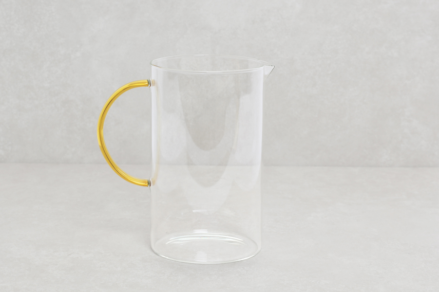 Glass pitcher with yellow handle 1.5 Liters