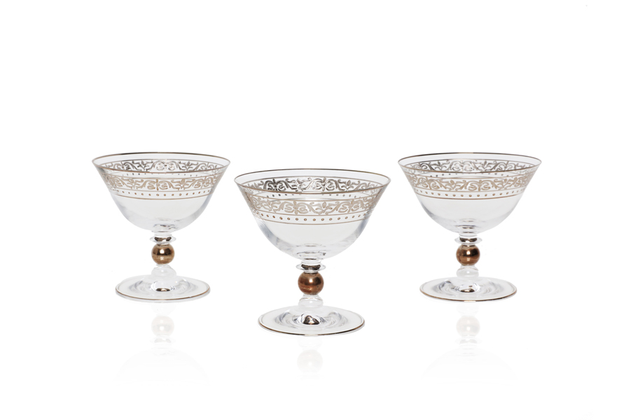 Set of 6 ice cream glass cups with platin designs