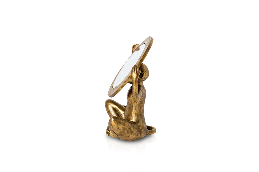 Gold Monkey holding mirror made in resin