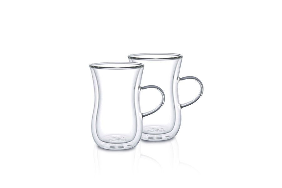 Set of 2 double wall glass tea cups