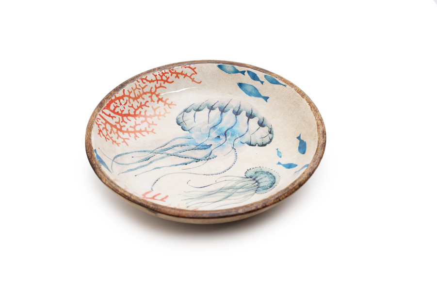 Lacquered wooden Jellyfish salad bowl D30cm