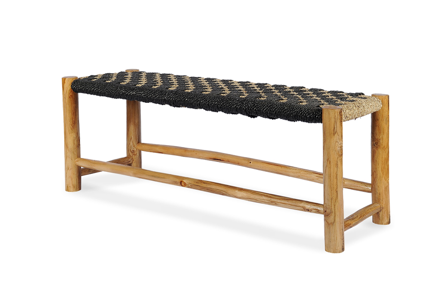 Black and natural rope bench with teak legs 120X38H50cm