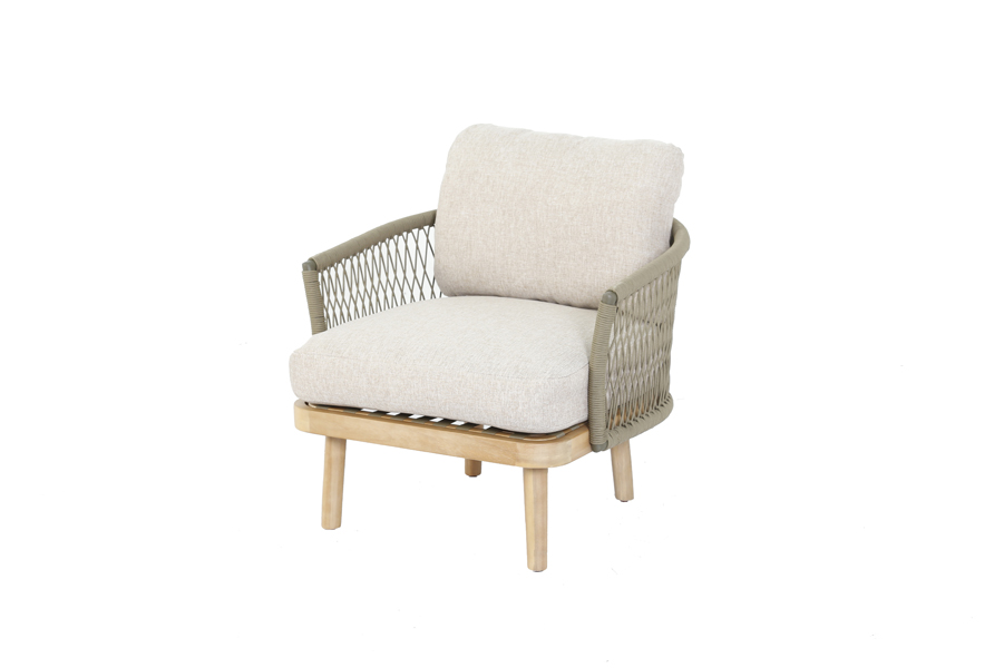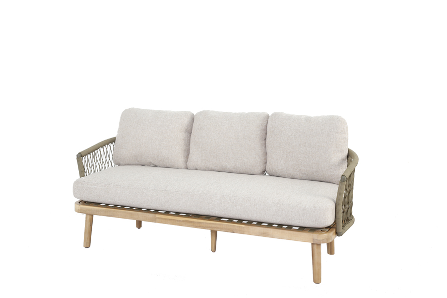 Olive rope sofa+2 armchairs with acacia coffee table - Mattress and cushions in beige color