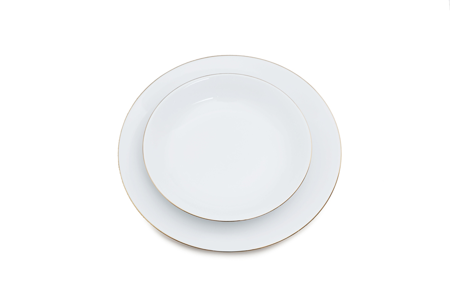White round porcelain dinnerware set with gold rim-18 Pieces