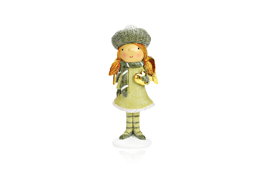 Polyresin Angel girl with gold heart H16cm