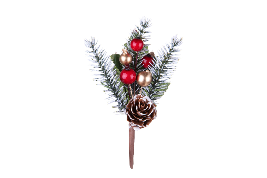 Artificial red and gold berries stick H13cm