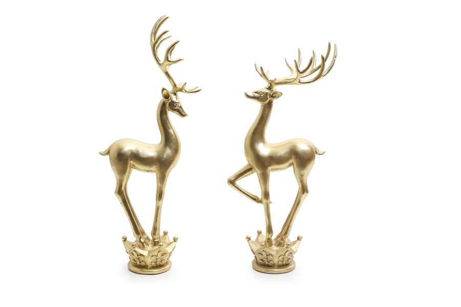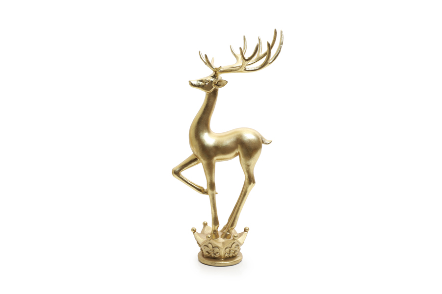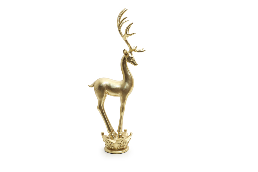 Gold resin deer figurine standing on stand H41cm