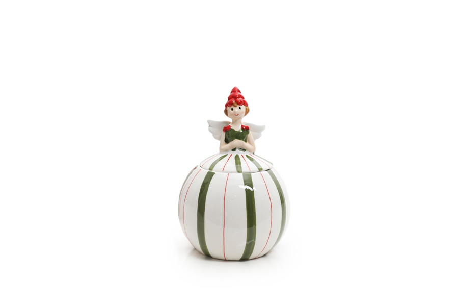 Ceramic candy bowl with angel handle