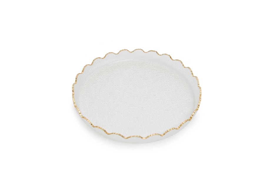 Clear glass serving dish with gold rim D33cm
