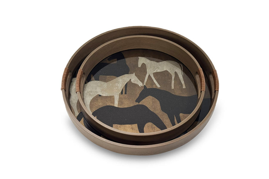 Crafted wooden round tray with Horse design