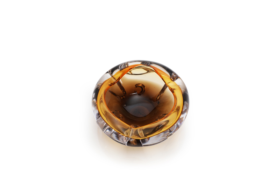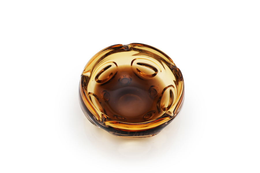 Round Amber and brown glass ashtray