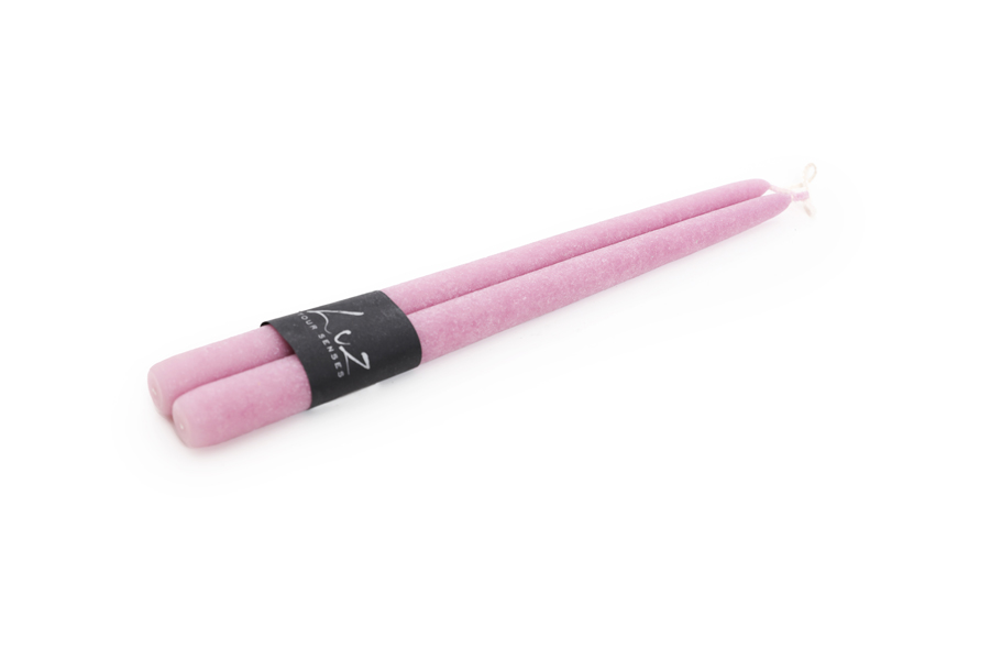 Set of 2 velvet pink candles D2.2cm H30cm