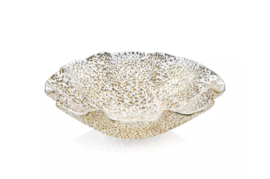 Clear and gold hammered glass salad bowl D25cm