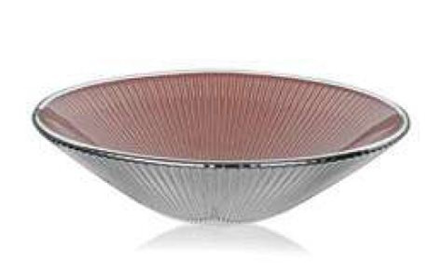 Clear glass deep serving dish with golden edge D41cm