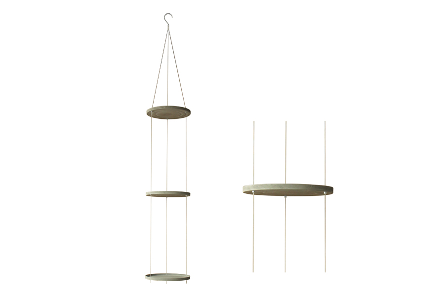Round natural cement hanging pots with steel cables
