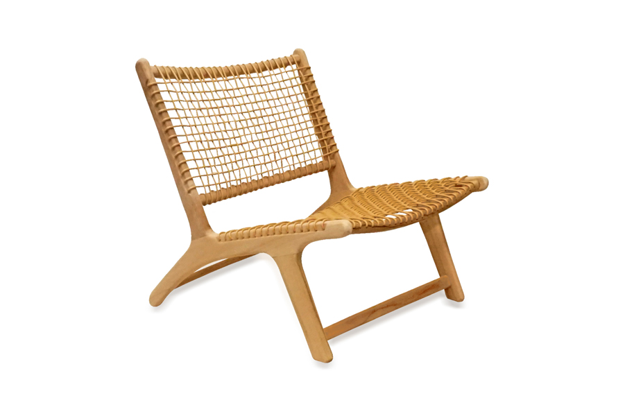 Outdoor teak wood and Honey resin lounge chair 64x75H68cm