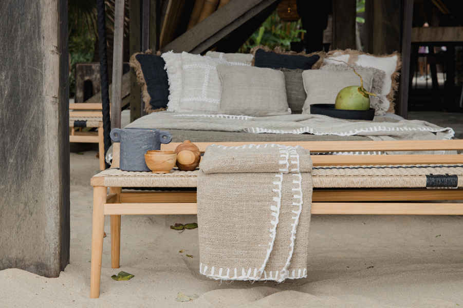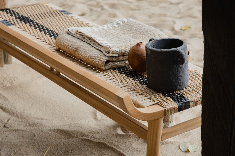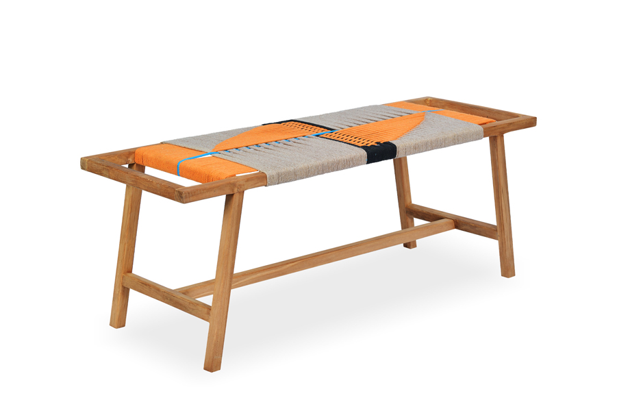 Outdoor teak wood bench with rope