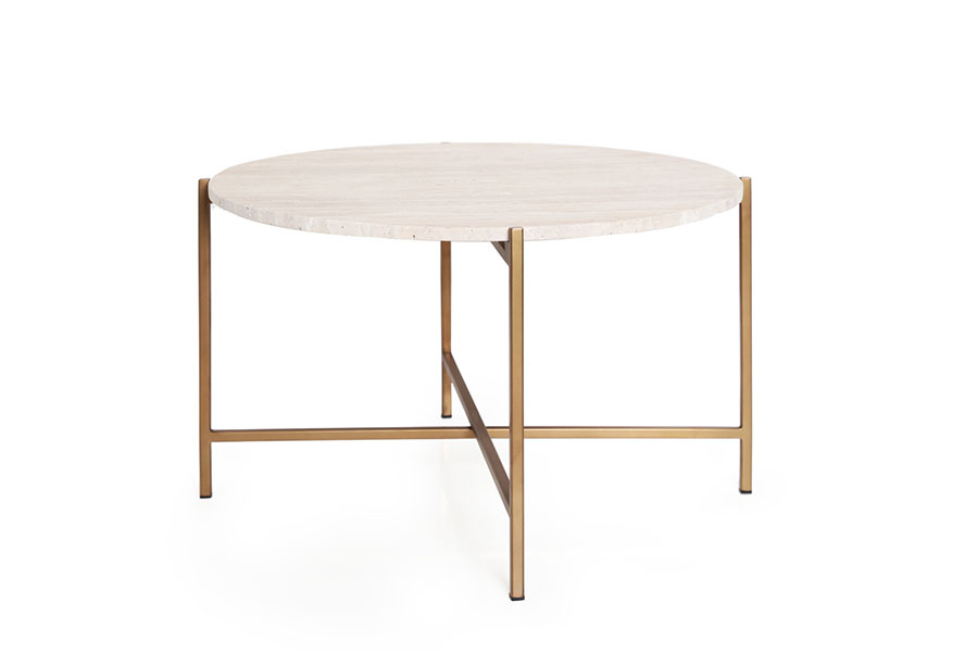 Cream marble coffee table with bronze metal legs D75cm H45cm