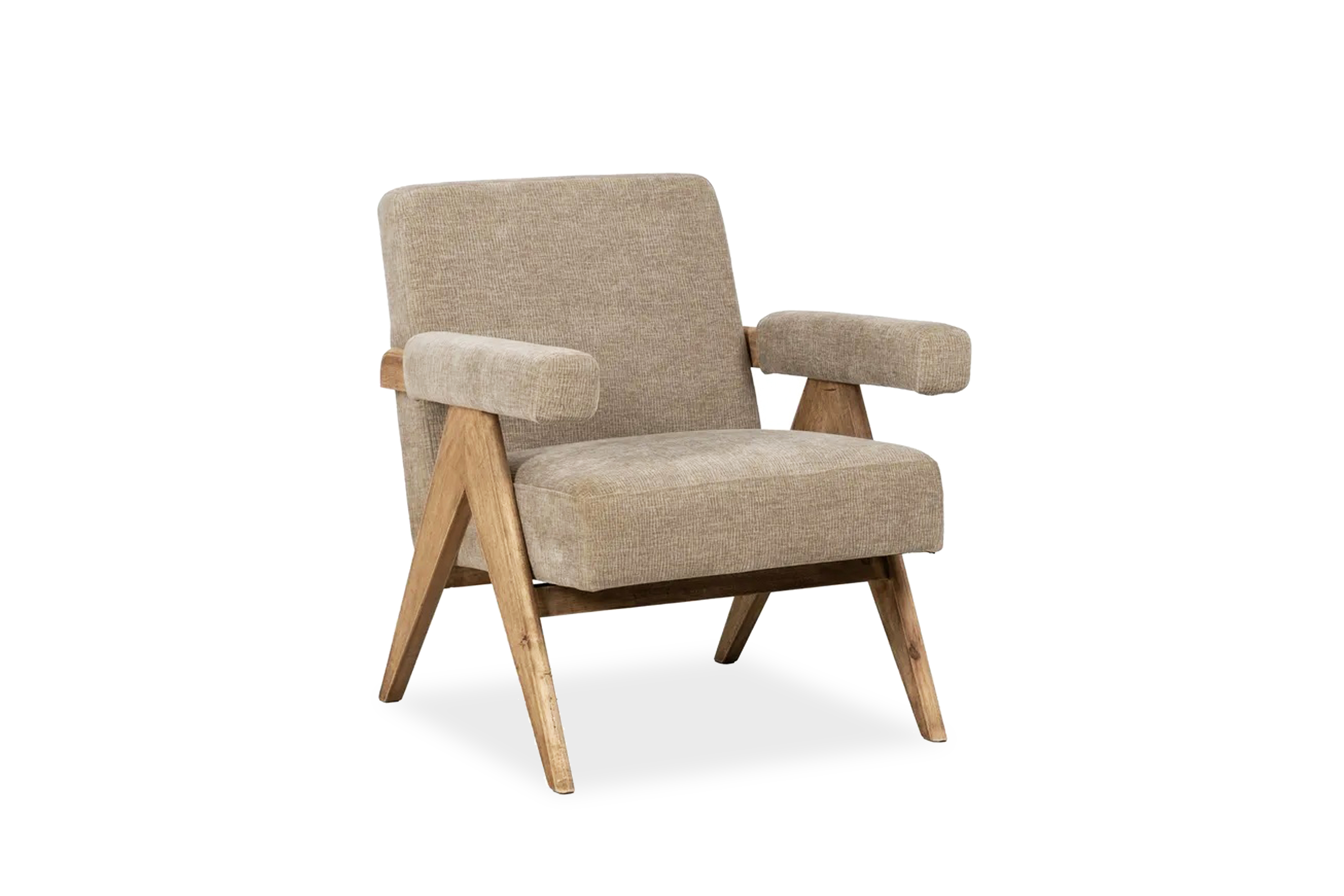 Beige fabric armchair with wood armrests 74X76H85cm
