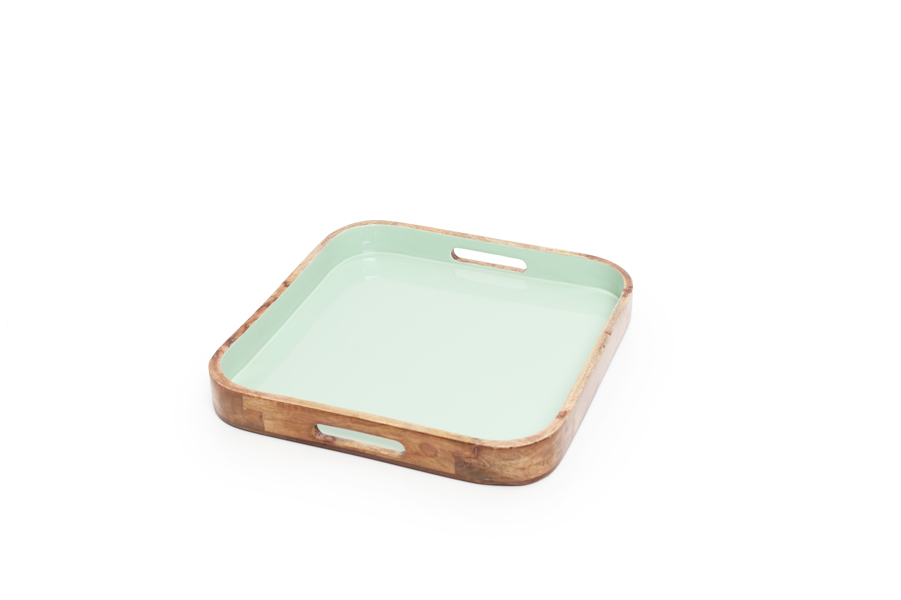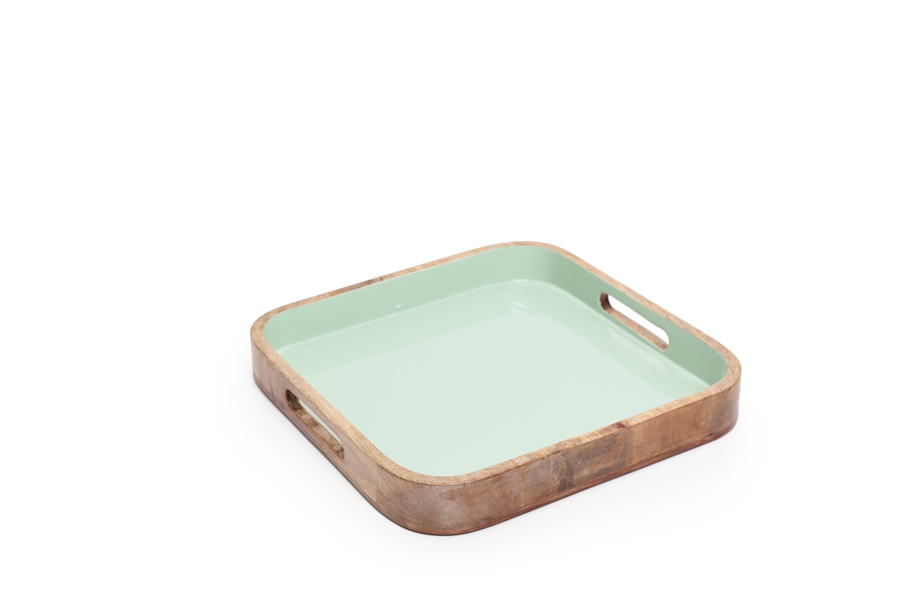 Green Sage enameled mango wood tray